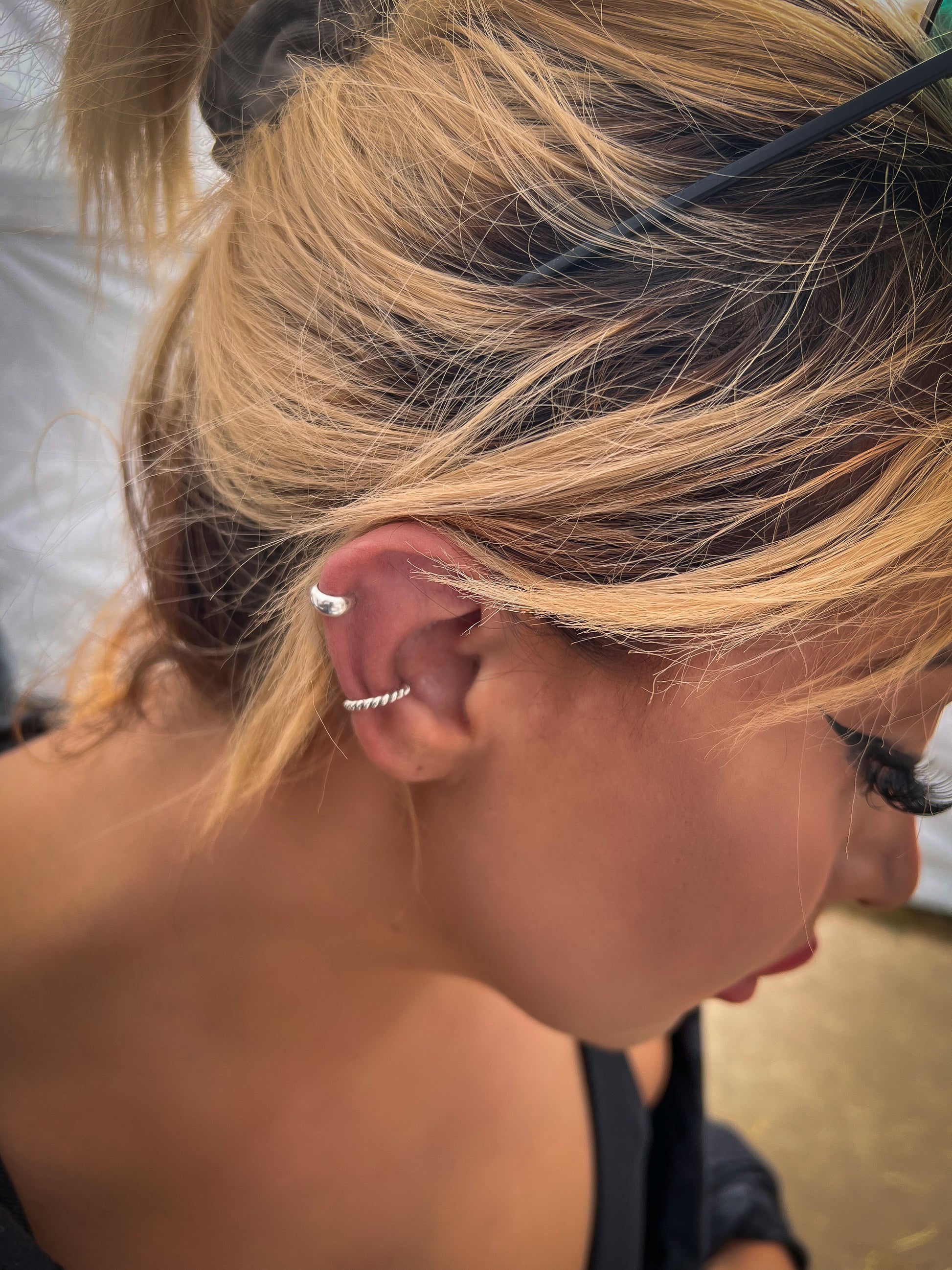 Handmade ear cuff made in 950 sterling silver & oxidized silver.